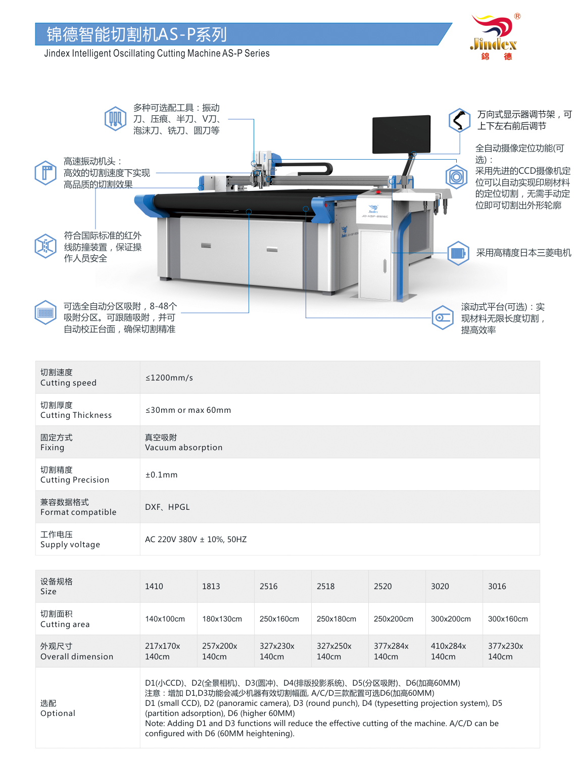 切割面積 Cutting area | 1400mm*1000mm | 1800mm*1300mm | 2500mm*1600mm | 2500mm*2010mm |