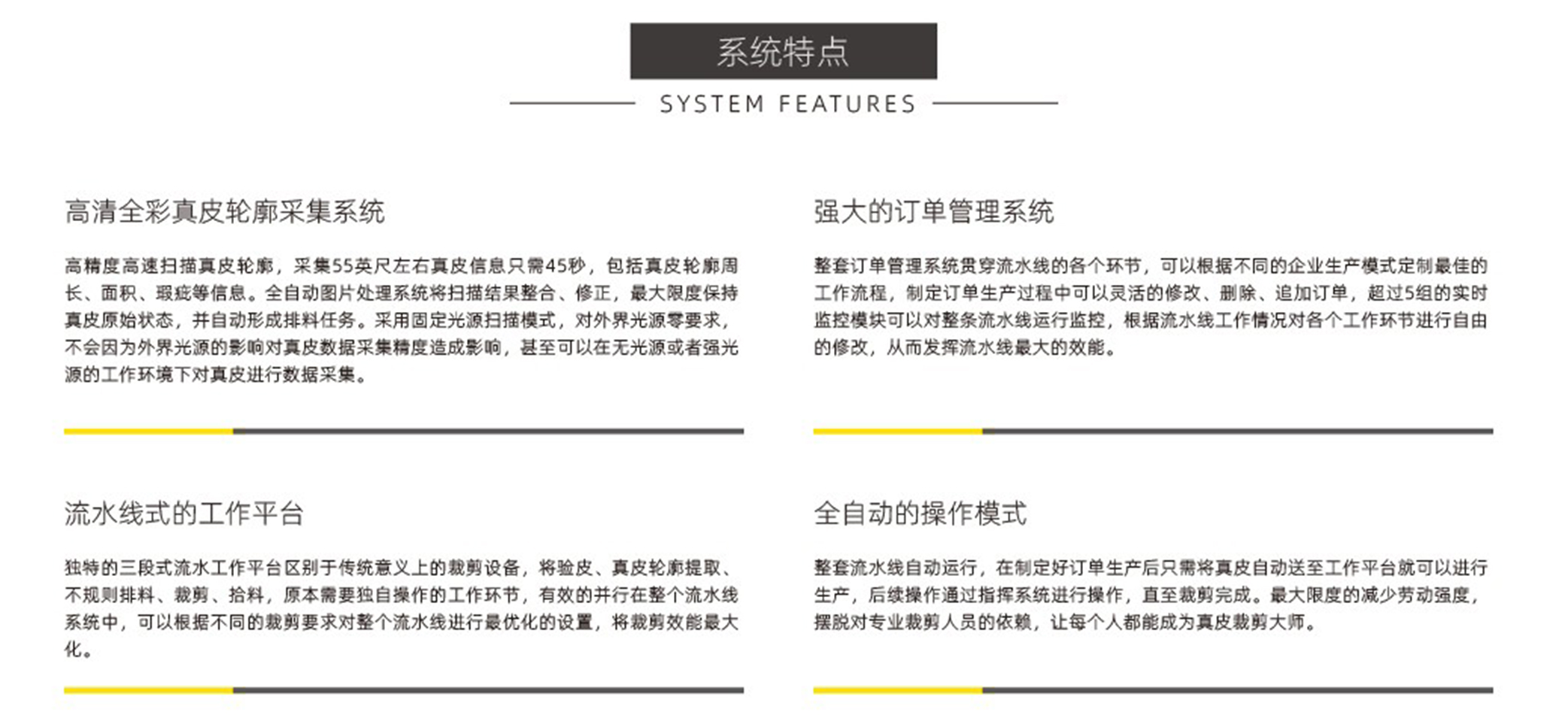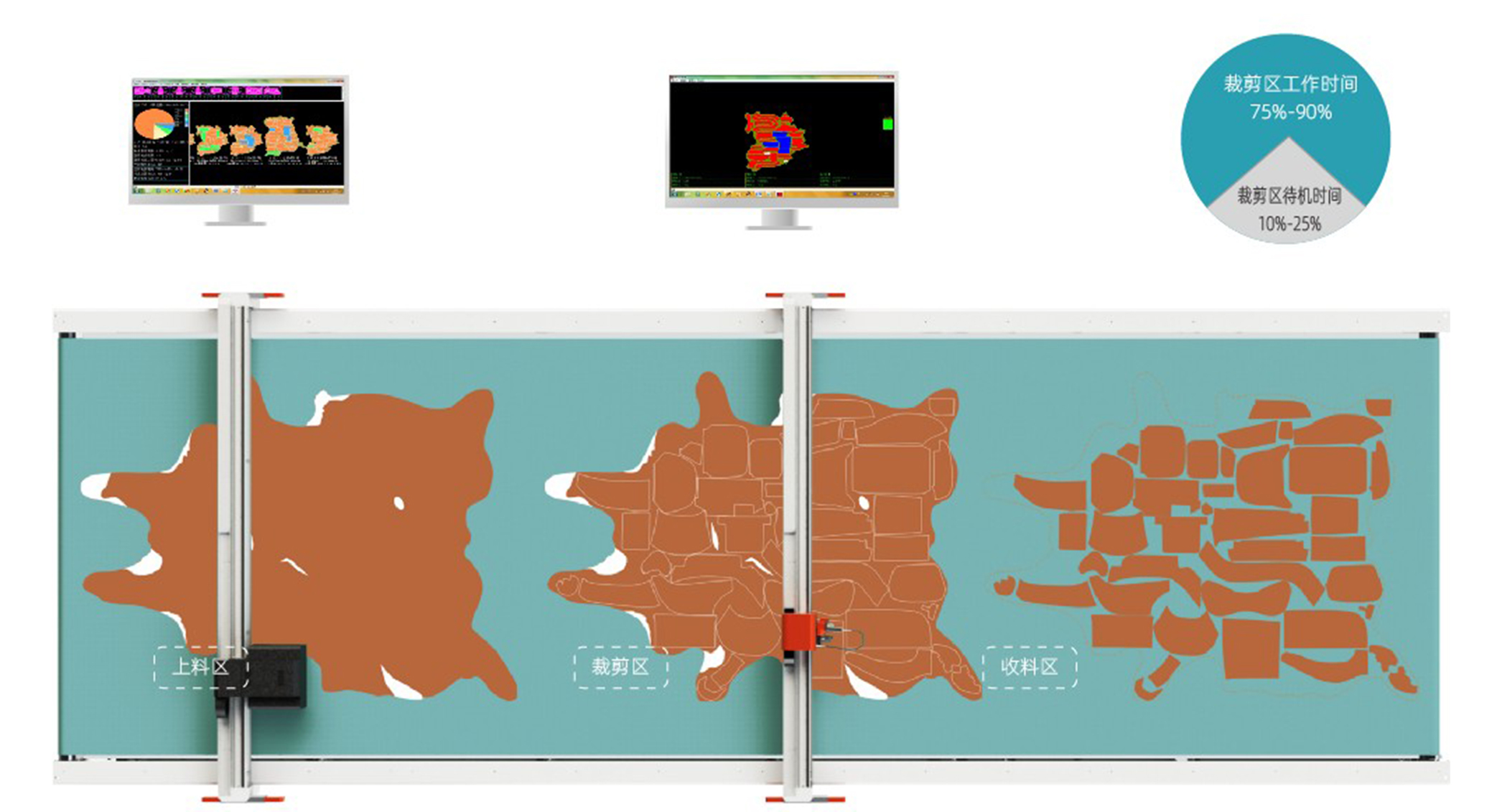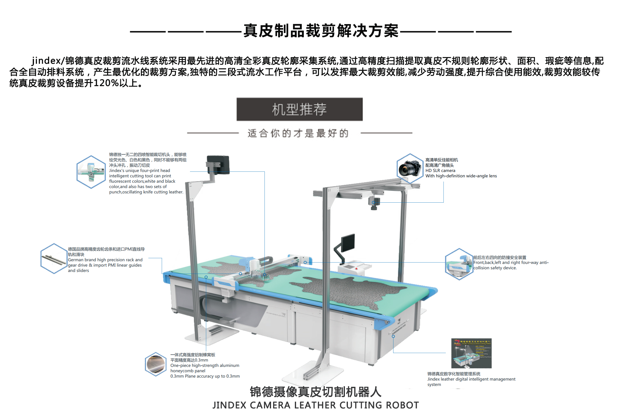 錦德真皮裁剪流水線系統(tǒng)采用先進(jìn)的高清全彩真皮輪廓采集系統(tǒng),通過(guò)高精度掃描...